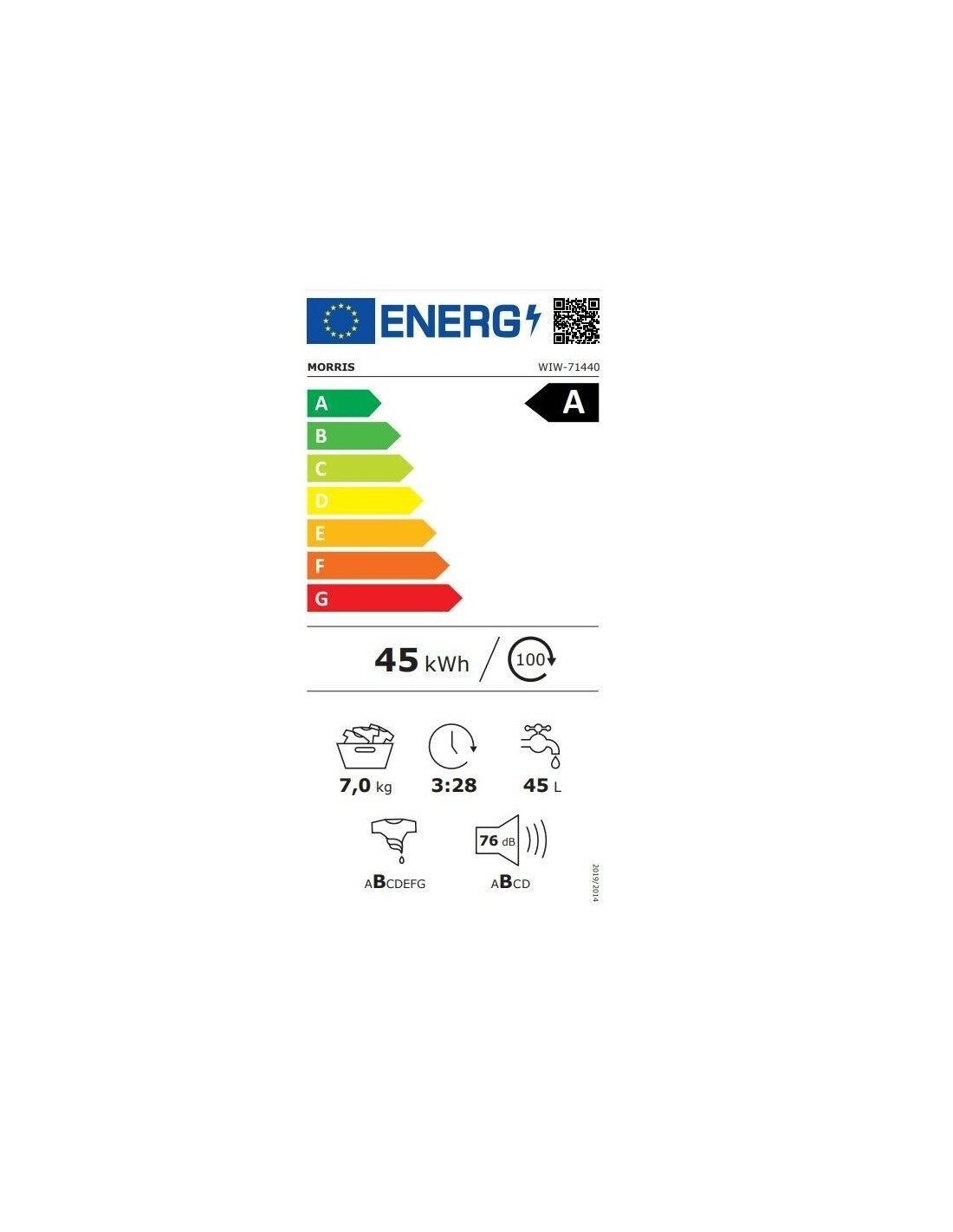 MORRIS WIW-71440 7kg 1400στρ Α CLASS ΛΕΥΚΟ