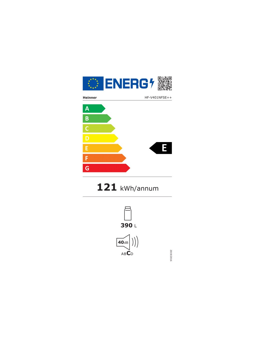 HEINNER HF-V401NFSE++ 186x60x65 E CLASS 389lt INOX