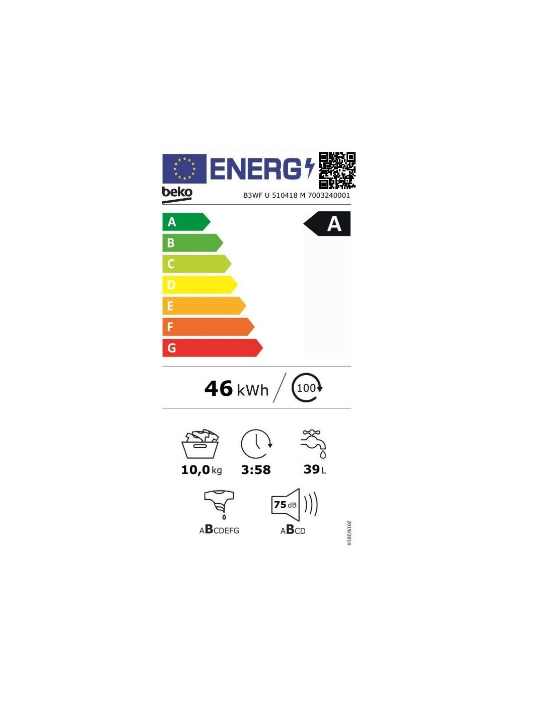 ΠΛΥΝΤΗΡΙΟ Ρ BEKO B3WF U 510418 10kg 1400στρ A CLASS ΜΑΥΡΟ
